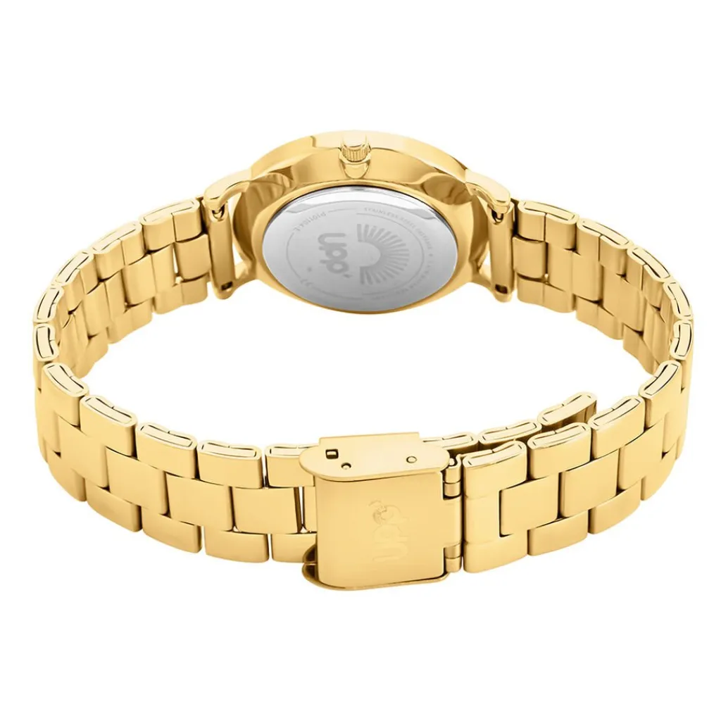 Montre Upp Solena Alliage Dore Ronde Quartz 29mm Fond Blanc Et Rose Rock N Roll Bracelet Acier Dore P101104-e